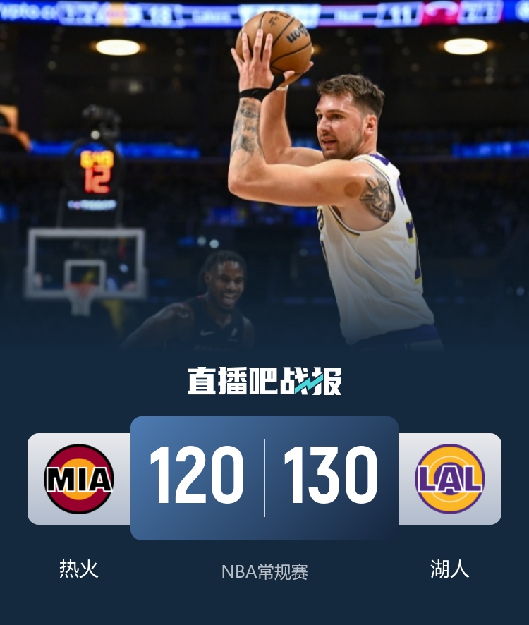 湖人浇灭热火迎3连胜 东契奇三双 里夫斯26+11 哈克斯31+8